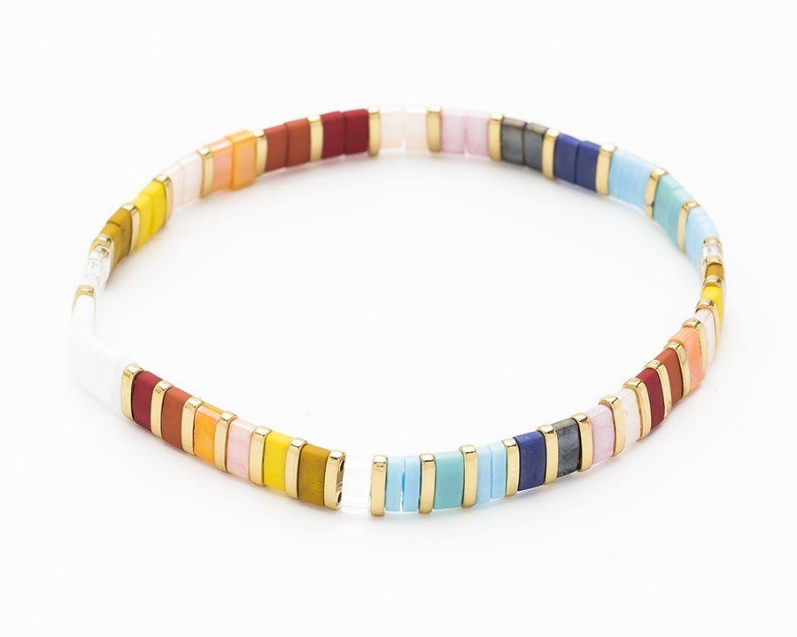Susan Rose Gold Tila Beads Hematite Stretch Bracelet