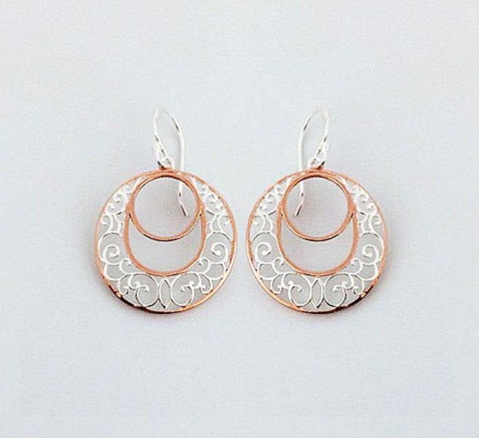Sterling Silver and Rose Gold Plated Filigree Earring