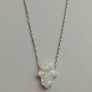 Sterling Silver White Opalite Hamsa Hand Necklace
