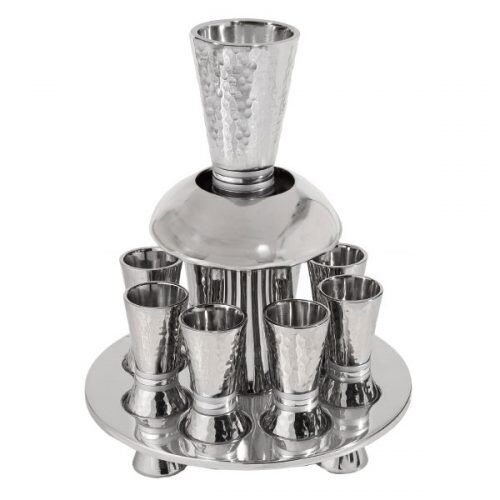 This Elegant Kiddush Fountain is made of Nickel and Hand made Sculpture using Hammer and stands on raised polished tray with small feet underneath